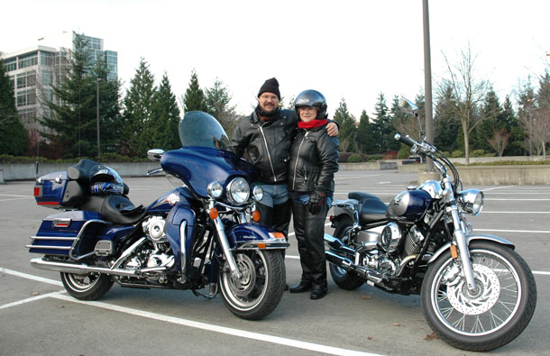 If I do anything else, it will probably be putting on Kuryakyn Isogrips, and different slip-on. Maybe do the 103" upgrade next year when the winter prices come down. Here's some pix of the party barge, and my wifes 650 v-star.